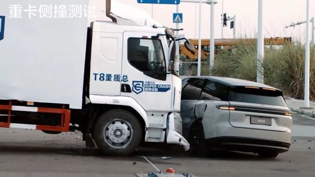 리오토는 자사의 3열 전기 SUV ‘L8’ 공개 행사에서 해당 차량이 8톤 급 대형 트럭과 정면충돌하는 영상을 선보였다. 실험 당시 L8은 시속 60㎞, 트럭은 시속 40㎞로 주행했으며, 두 차량은 서로 마주 보며 충돌했다. L8의 차량 중량은 약 2.6톤, 트럭은 8톤 이상으로 무게 차이가 3배 이상이다.