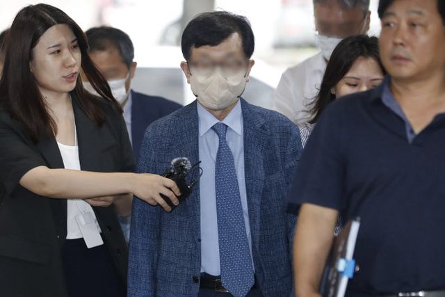 황욱정 KDFS 대표가 2023년 7월 13일 서울 서초구 서울중앙지방법원에서 열린 영장실질심사에 출석하고 있다. (사진=뉴시스)