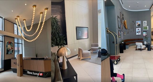 공유 공간은 높은 층고로 쾌적한 느낌을 주며, 커다란 TV와 긴 식탁, 라운드 테이블 등 다양한 휴식 공간이 마련되어 있어 감탄을 자아낸다.