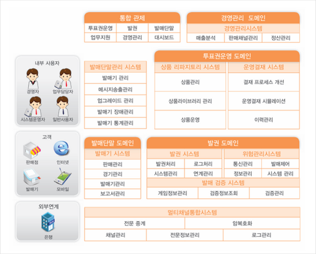 ‘발권 도메인’에서는 발매 단말 서비스로부터의 개별 발권, 취소, 환급 및 환불 기능을 처리하는 한편, 위험관리 시스템을 통해 발매와 배당률 등의 위험 지표를 모니터링하고 이상 징후 발생 시 사전 차단 및 알림 기능을 수행한다. 또한 발매 데이터에 대한 검증 처리 및 투표권 시스템과의 비교 검증을 통한 감사 업무를 처리할 수 있다.
