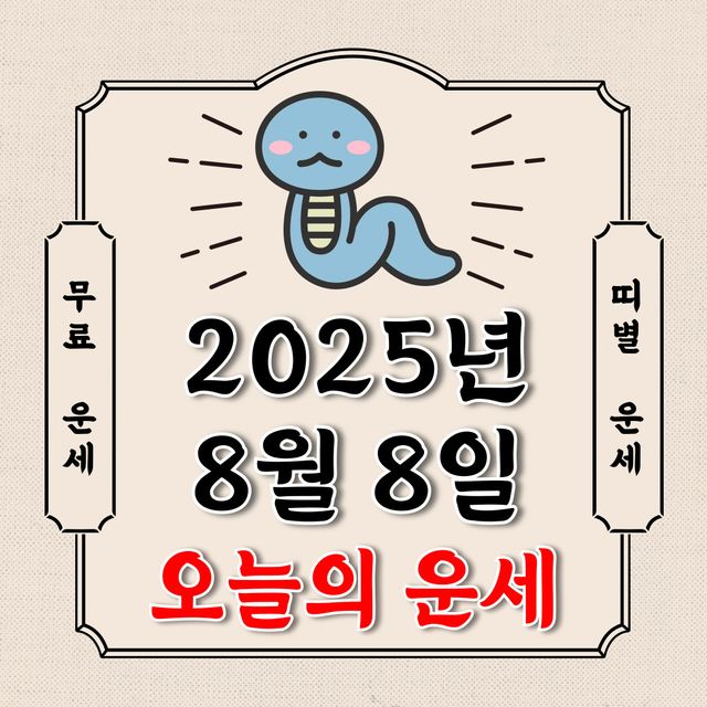 오늘의 운세 2025년 8월 8일 금요일 (음력 6월 15일 / 띠별 운세 / 생년월일 운세)에 대해 알아 보겠습니다.