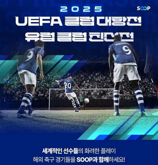 8일 SOOP은 유럽 5대 리그 클럽들의 '2025 프리시즌 친선경기', 유럽축구연맹(UEFA) '챔피언스리그'·'유로파리그'·'컨퍼런스리그' 등 클럽 대항전의 주요 경기를 생중계한다고 밝혔다.