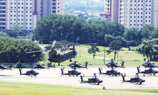 7일 경기도 평택시 캠프 험프리스에서 CH-47 치누크 헬기가 이동하고 있다. (사진=연합뉴스)