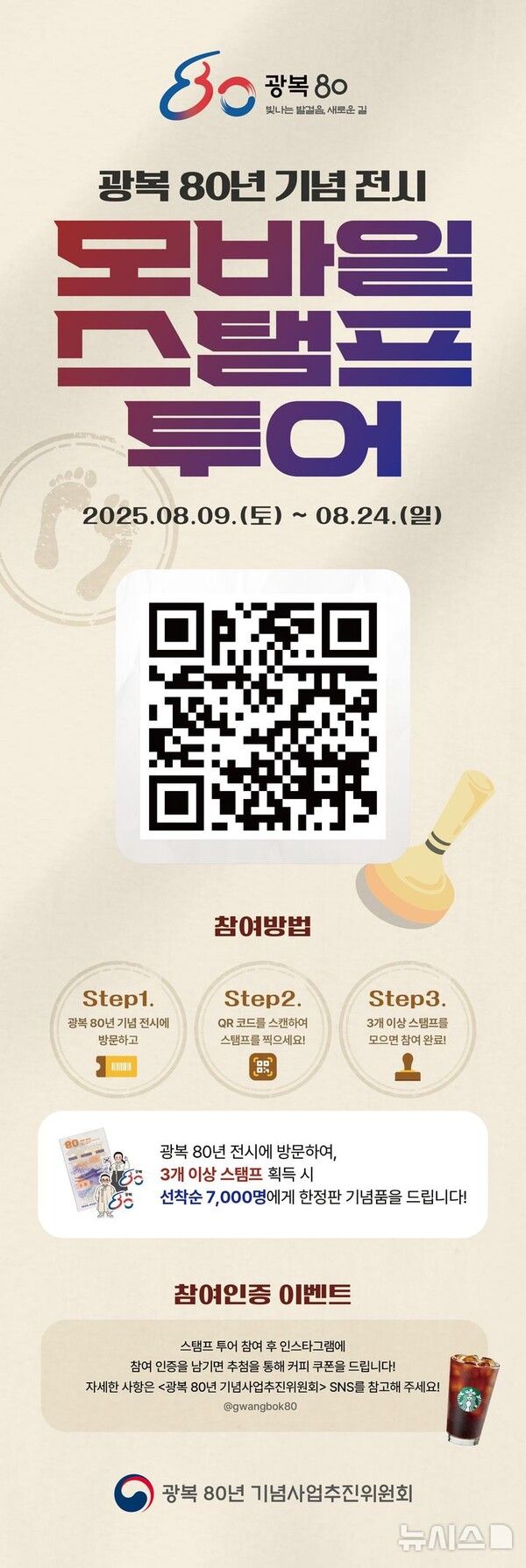 광복 80년 기념사업추진위원회는 24일까지 총 2주간 6개 전시를 대상으로 '광복 80년 기념 전시 모바일 스탬프 투어'를 진행한다고 8일 밝혔다.