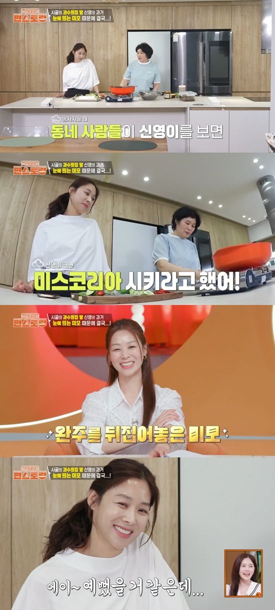 이날 방송에서 장신영의 모친은 "사람들이 '딸 미스코리아 보내라'라고 했었다"라고 밝혔다. 이에 장신영은 "아니다. 나 촌스러웠다"라고 말했지만, 입가에 미소는 숨기지 못했다. 장신영의 과거 모습이 공개되자, 문 샤넬은 "너무 예쁘시다"리며 감탄했고, 효정은 "아니 지금이랑 똑같다"라며 놀랐다.