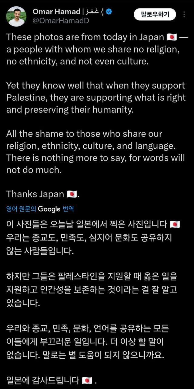 팔레스타인을 위해 이 정도로 많은 일본인들이 모였다고 함...