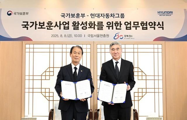 이번 업무협약은 현대차그룹과 국가보훈부가 광복 80주년을 맞아 독립유공자와 유가족에 대한 예우를 강화하고 보훈 문화 확산에 기여하기 위해 뜻을 모아 성사됐다.