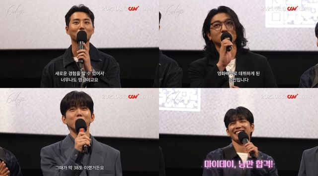 성진은 “영화배우로 데뷔하게 된 성진”이라고 재치 있게 소개하며 “내가 오프로드에서 직접 운전한 모습이 담겨 있을 것이다. 굉장히 재밌어 보일 것”이라고 귀띔했다. 원필 역시 “영화배우 원필”이라고 인사하면서 “넷이서 다 보고 진짜 놀란 게 별이 엄청 많았다. 빼곡히 많았고 가까이 있는 것 같았다. 그게 너무 예뻤다”고 털어놨다. 이에 성진은 “그때보다 지금 우리 앞에 있는 별들이 더 (예쁘다)”라며 애교를 부렸고 영케이는 “낭만 합격!”이라고 외쳐 웃음을 자아냈다.