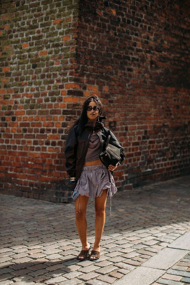 특별한 날엔 프릴 디테일로 기분 전환을 해보는 건 어떨까요? 깅엄체크 미니스커트 셋업을 스포티한 박시 재킷과 매치하니 러블리하면서도 쿨한 무드가 완성됐네요. 여기에 뮬로 힘을 살짝 뺀 덕분에, 도심 속에서도 휴양지 감성이 살아나는 듯하군요. 가을에는 간단히 부츠로 바꿔 신으면 그만이고요!