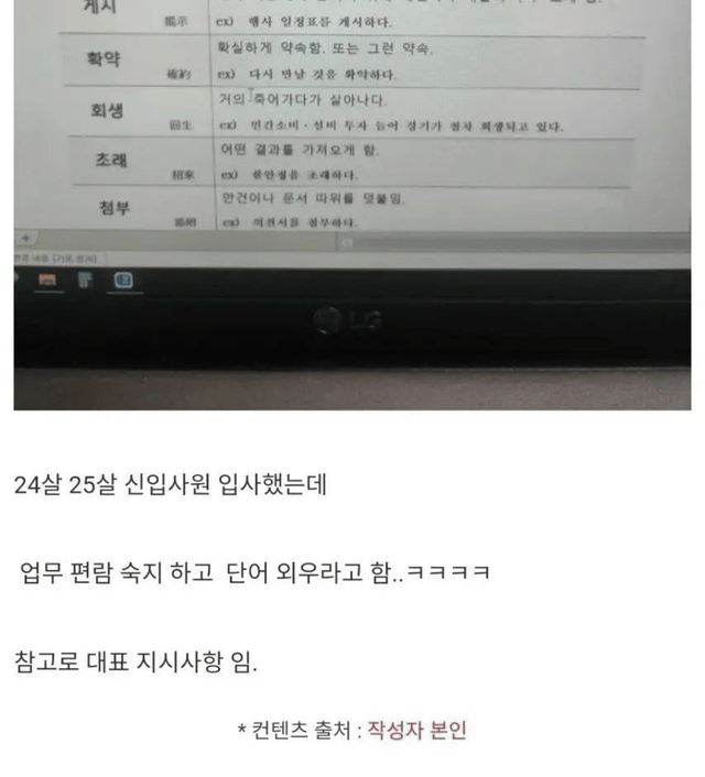 요즘 신입들 입사 하면 주는 문서