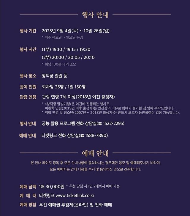 다음은 2025 하반기 창덕궁 달빛기행의 기타 유의사항이다.