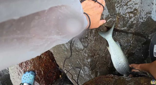 이날 목표 어종은 감성돔(감생이), 학공치, 고등어, 전어, 농어, 숭어 등이었다. 특히 해녀 출신 지인의 부탁으로 숭어도 함께 노렸다. 그러나 첫 투망에서는 농어 새끼, 숭어 새끼, 학공치 치어 등 대부분 미성어만 잡혔고, 전어와 독가시치로 추정되는 물고기, 불가사리도 섞여 나왔다. 강풍과 거센 비로 투망이 제대로 펴지지 않아 조과는 만족스럽지 못했다.