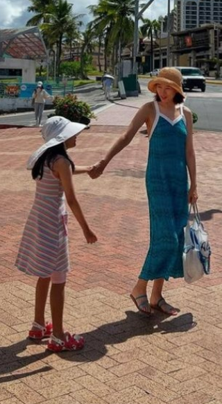 특히 훌쩍 큰 로아의 모습이 눈길을 끌었다. 로아는 화이트 모자와 줄무늬 원피스를 입은 채 조윤희의 손을 꼭 잡으며 여유로운 분위기를 자아냈다.