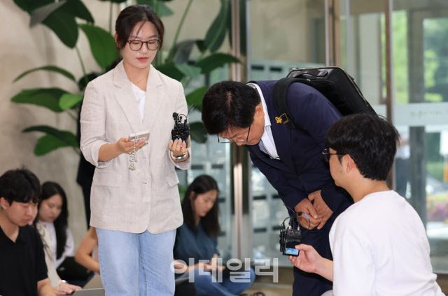 | [이데일리 노진환 기자] 최교진 사회부총리 겸 교육부 장관 후보자가 14일 오전 인사청문회 준비 사무실이 마련된 서울 여의도 한국교육시설안전원으로 출근, 취재진과 질의 응답 후 허리숙여 인사하고 있다. |