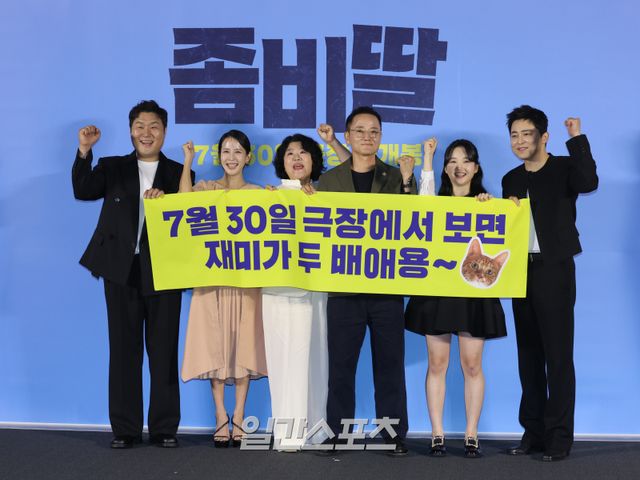 배우 윤경호, 조여정, 이정은, 필감성 감독, 최유리, 조정석이 지난 6월 30일 오전 서울 용산구 CGV용산아이파크몰에서 열린 영화 '좀비딸' 제작보고회에 참석해 포즈를 취하고 있다. 서병수 기자 qudtn@edaily.co.kr