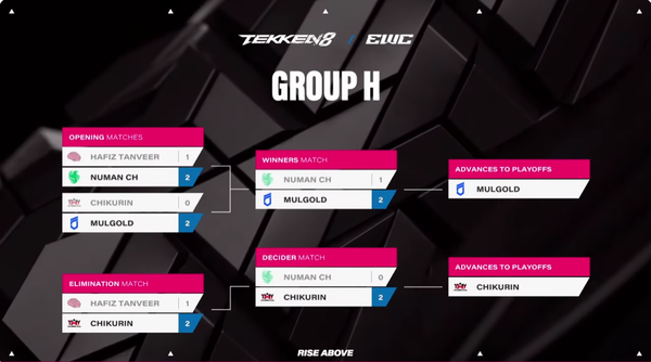 ▲사진 출처=EWC 철권8, H조는 우승권 4명이 한 조에 편성된 죽음의 조 진출자는 물골드와 치쿠린