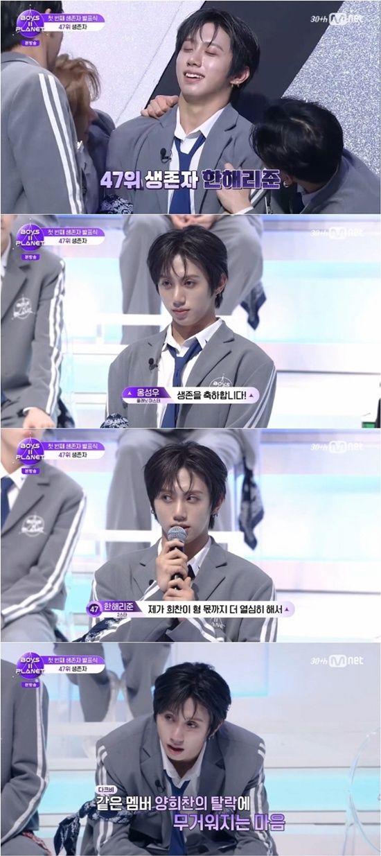 지난 14일 방송된 '보이즈 2 플래닛'에서는 첫 번째 생존자 발표식이 진행됐다. 첫 등장부터 독보적인 실력과 다채로운 매력을 선보였던 한해리준은 꾸준한 성장세를 보이며 글로벌 팬들의 마음을 사로잡았고 47위로 생존하며 도전을 이어가게 됐다.