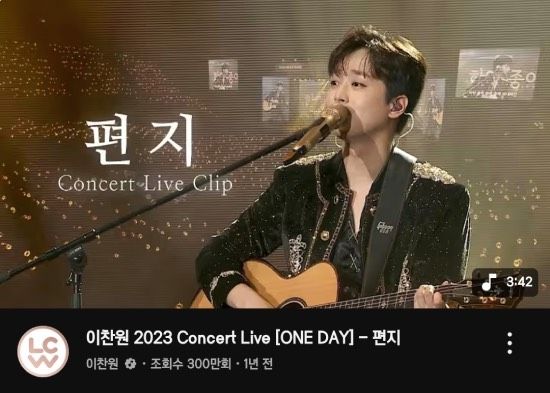 지난 2023년 12월 이찬원의 공식 유튜브 채널(일명 또튜브)에는 "2023 Concert Live [ONE DAY] - 편지"라는 제목의 라이브 실황 클립이 게재됐다.