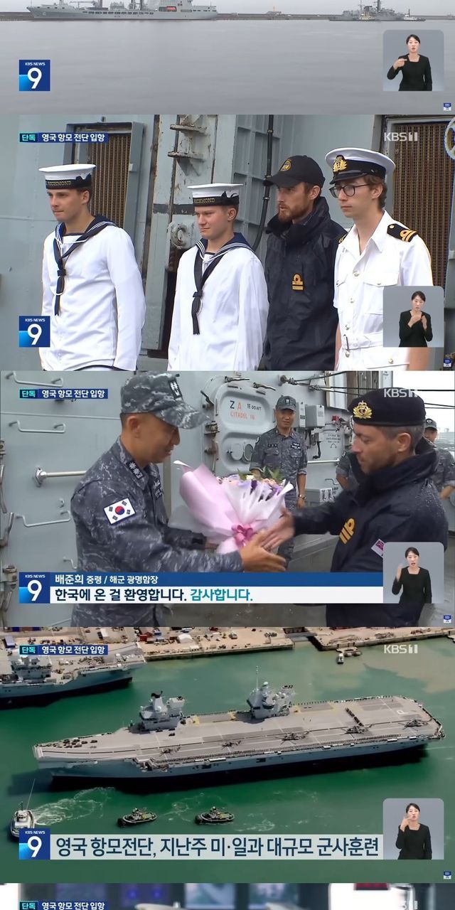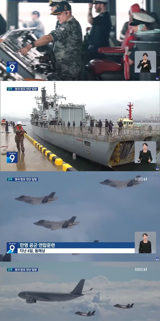 지난 4일 동해상에서 영국 항모전단 소속 F-35B 전투기와 공중급유기가 우리 공군과 연합훈련을 진행했고, 다음 달엔 항공모함 프린스오브웨일스함이 우리 해역에서 해상 항공전력 시연에 나설 예정.