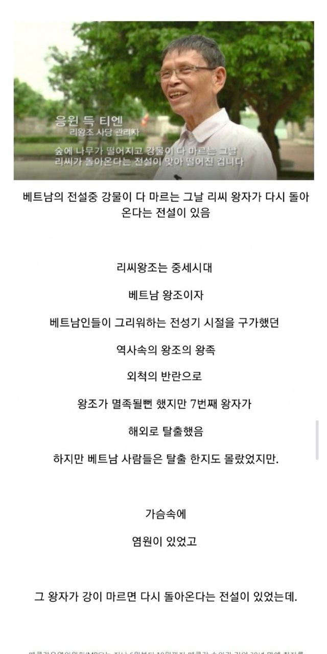 한반도에서 리 왕조의 후손이 베트남을 먹여 살릴 거리를 가지고 온다는 내용인데,