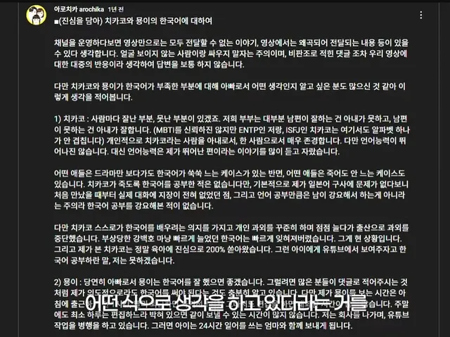 딸한테 한국어 안 가르치냐 애엄마는 한국어 못하냐, 다른 커플들은 잘하는데 하는 악플과 댓글이 꾸준히 달려서 스트레스 받는다고 함.