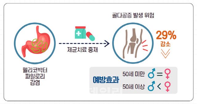 연구진은 분당서울대병원에서 헬리코박터 검사를 받은 성인 846명을 대상으로 2003년부터 2023년까지 최대 20년(평균 10년)간 추적 관찰 연구를 진행했다. 그 결과, 제균 치료를 하지 않은 그룹(116명)의 골다공증 발생은 34.5%였으나, 헬리코박터 파일로리를 성공적으로 제균한 그룹(730명)은 24.5%로, 골다공증 발생 위험을 약 29% 감소시키는 것으로 확인됐다.