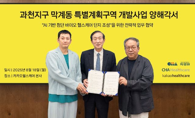 차병원과 차헬스케어, 카카오헬스케어가 손잡고 과천 막계지구에 AI 기반 첨단 바이오 헬스케어 단지를 조성한다.