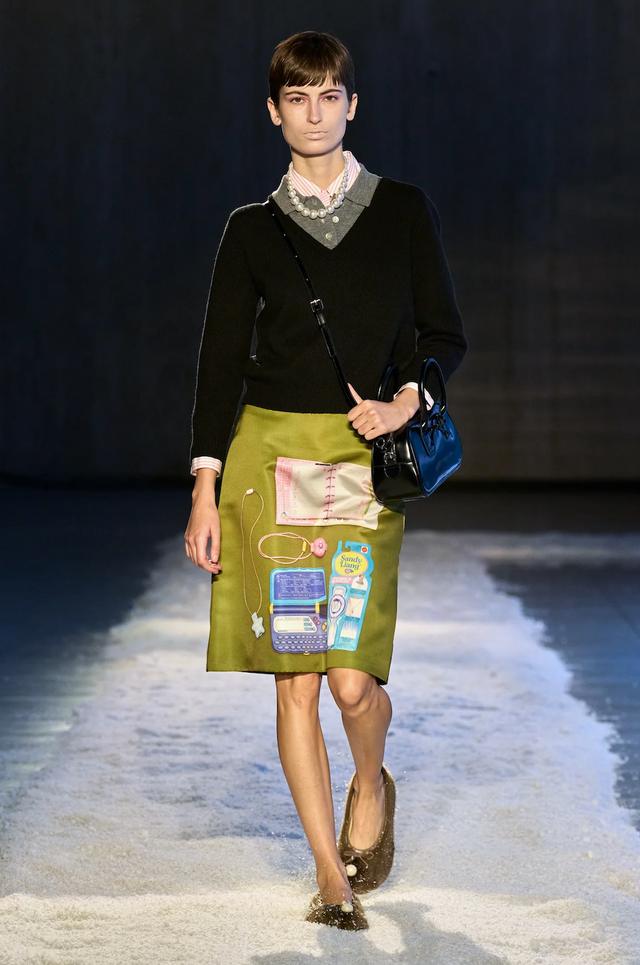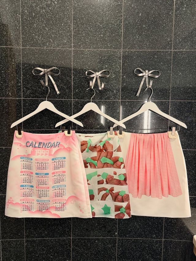 바로, 별 종이접기 튜토리얼을 통째로 프린트한 스커트. 종이를 오므리고 접어 귀여운 별을 완성하던 그 과정을 고스란히 담아낸 디자인은 보는 순간 ‘아, 이거 알지!’ 하고 웃음 짓게 만든다. 학창시절 누군가 몰래 선물해주던 유리병 속 반짝이는 별들, 친구들과 수다 떨며 손끝으로 접어내던 작은 소망들. 그 사소하지만 반짝였던 기억이 런웨이 위에서 다시 태어난 것이다.