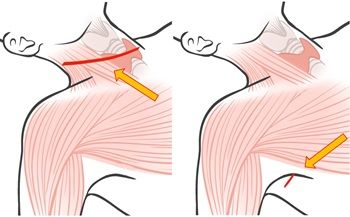 (그림 : 측경부임파선곽청술의 개경술 절개 부위, GOSTA 절개 부위)