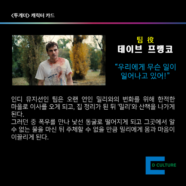내달 3일 개봉하는 영화 <투게더>를 재미있게 볼 수 있도록, 주요 캐릭터에 대한 카드 뉴스를 제작했다. <편집자 주>