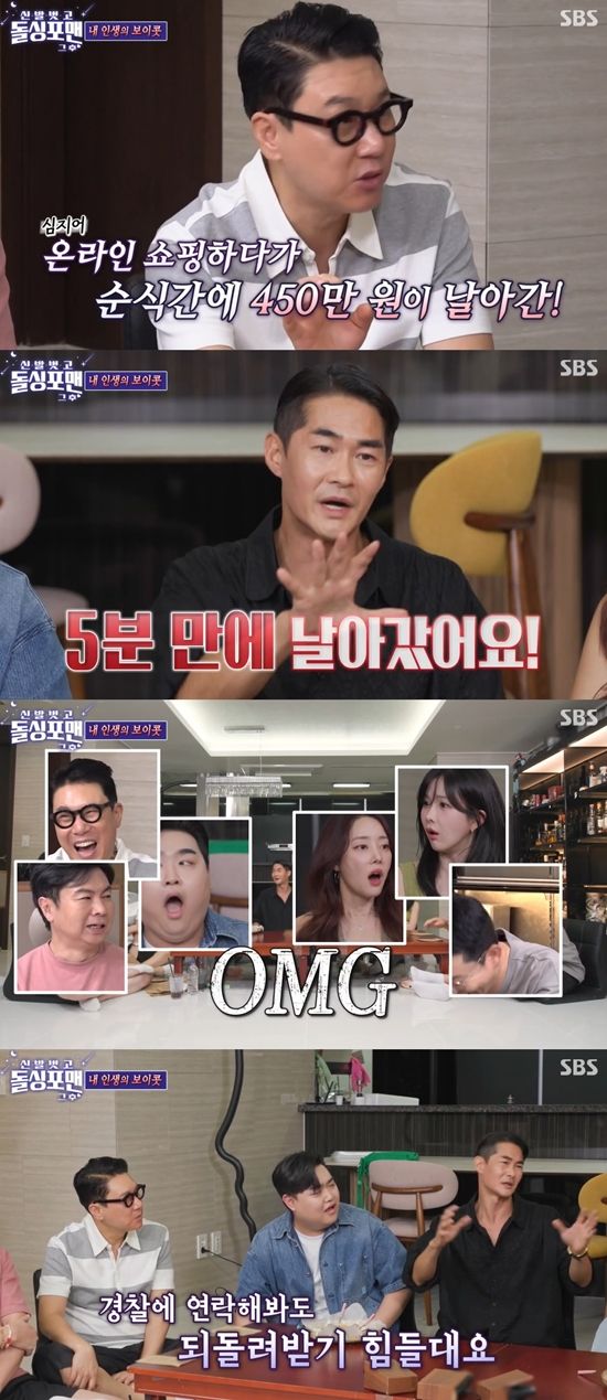 배정남은 "5분도 안 돼서 450만 3,000원이 들어갔다. 이상했다. '다 넣었는데 왜 안되냐'라고 물으니 '500만 원까지 채워야 환불된다'라더라. 그때 '아 당했다' 생각했다. 그래서 경찰에 전화를 하니까 (되돌려받기) 힘들다고 하더라"라고 말했다.