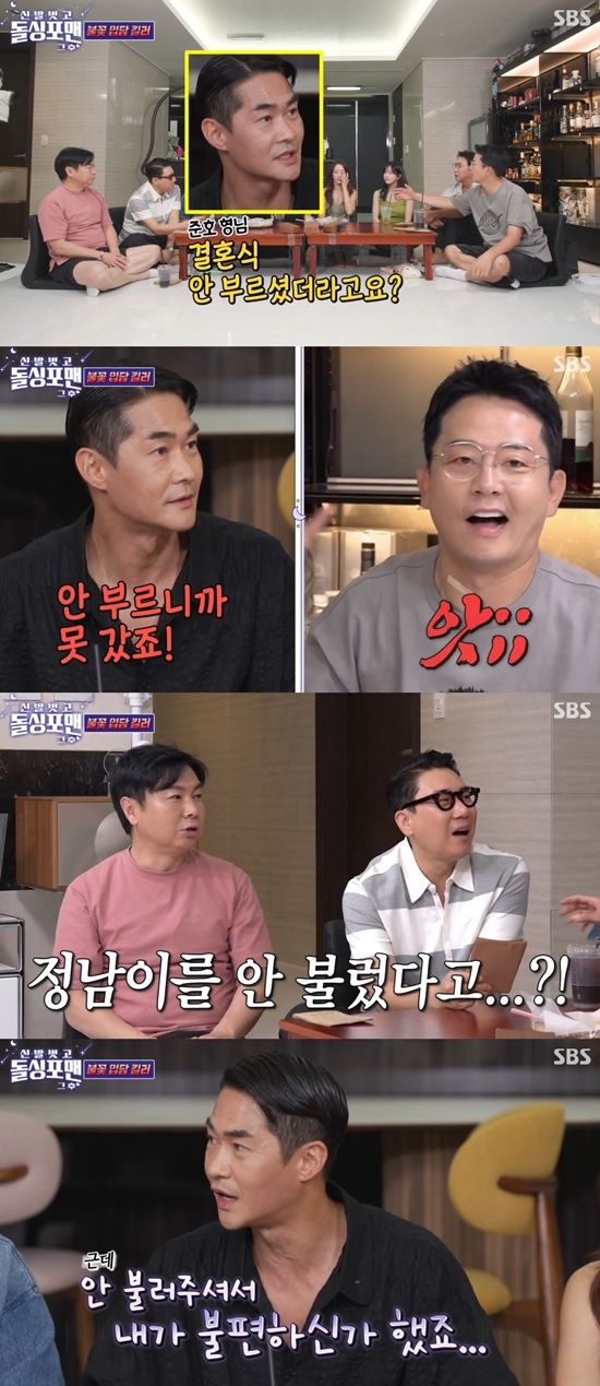 이날 배정남은 김준호를 보자마자 "결혼식에 (나를) 안 부르셨다"라며 섭섭함을 드러냈다. 당황한 김준호는 "결혼식 왜 안 왔냐?"라며 역으로 질문했다.
