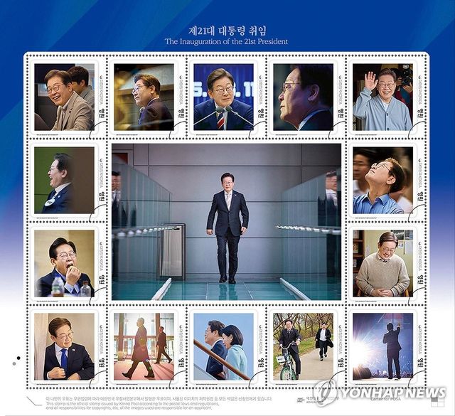 이재명 대통령 취임 100일 맞아 기념우표 발행. 과학기술정보통신부 우정사업본부는 제21대 대통령 취임 기념우표를 이재명 대통령 취임 100일을 맞아 다음 달 11일 발행한다고 지난 18일 밝혔다. / 우정사업본부 제공-연합뉴스
