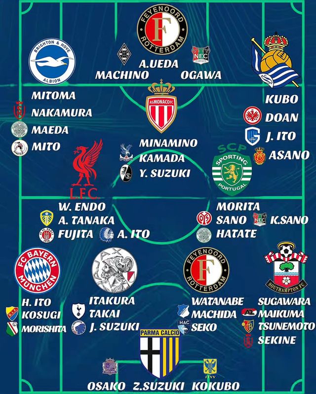 베스트 11에는 페예노르트 로테르담에서 뛰는 우에다 아야세, 브라이턴 앤드 호브 앨비언의 미토마 가오루, 레알 소시에다드의 구보 다케후사가 스리톱을 이뤘다.