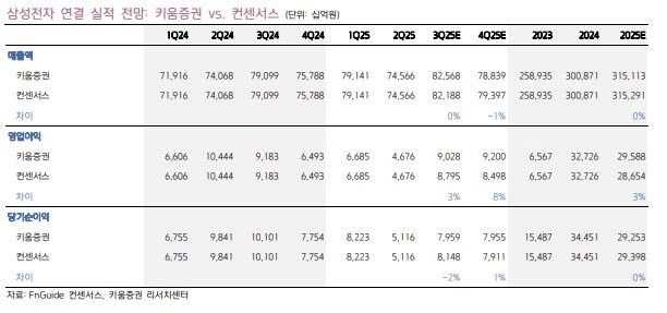 박 연구원은 삼성전자의 3분기 매출은 82조 6000억원, 영업이익은 9조원으로 전분기 대비 각각 11%, 93% 증가할 것으로 전망했다. 기존 키움증권의 전망치 및 시장 컨센서스(전망치 평균)을 상회하는 수준이다.