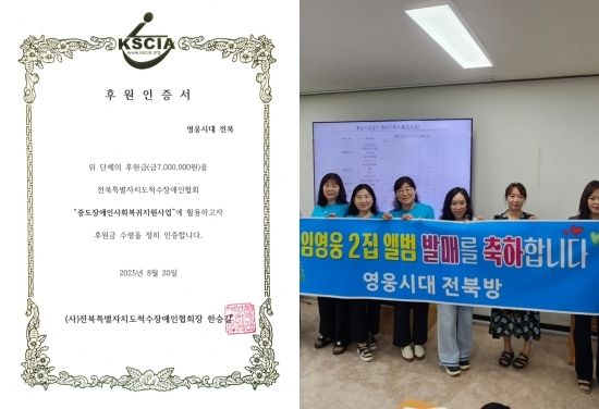 (엑스포츠뉴스 이정범 기자) '영웅시대 전북방'이 전북특별자치도척수장애인협회에 700만 원을 기부했다.
