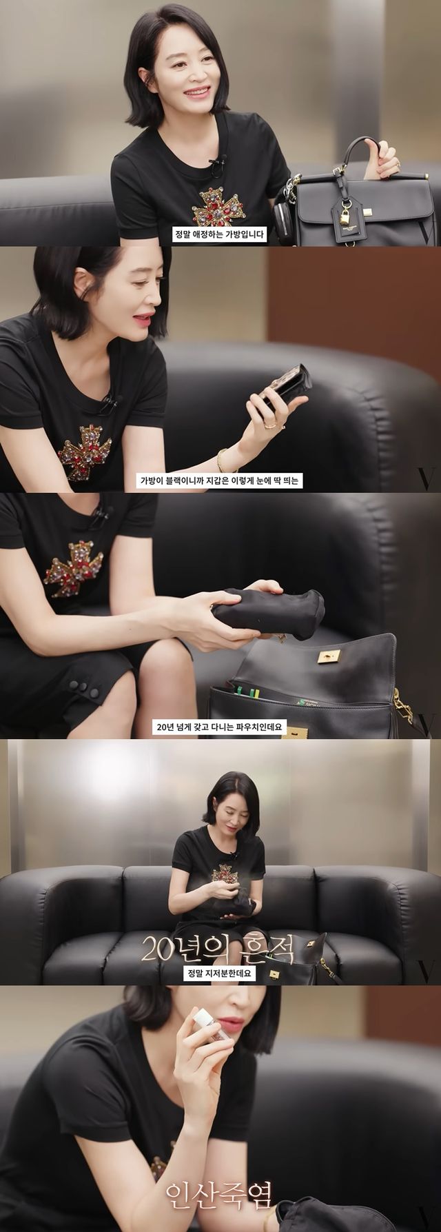 다음으로 꺼낸 검은색 파우치에 대해서는 "20년 넘게 갖고 다니는 파우치다. 이 안에는..."이라고 설명했고, 파우치를 열어보던 중 잠시 멈칫하더니 "정말 지저분하다"고 웃었다.