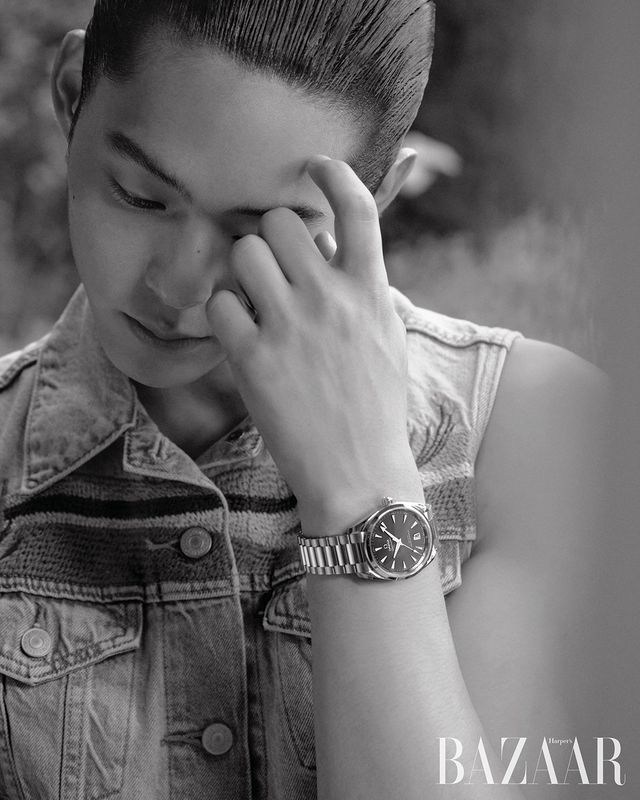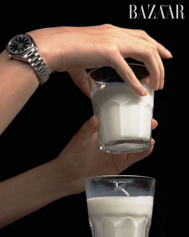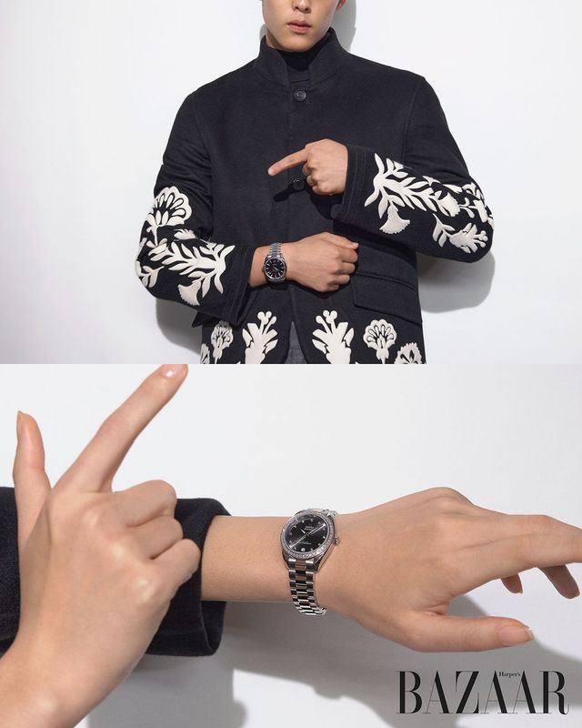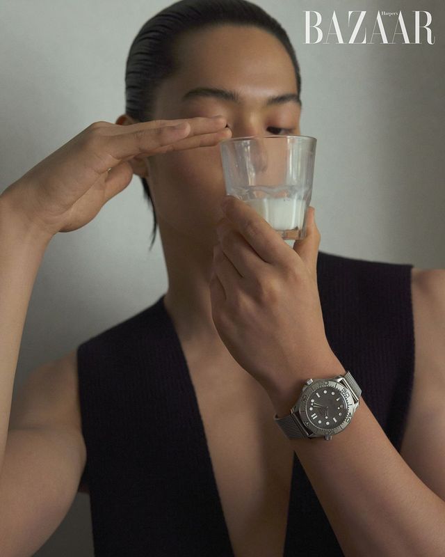 샤넬이 착용한 코-액시얼 이스케이프먼트가 장착된 스틸 및 세드나 골드 케이스의 브라운 컬러 다이얼 ‘씨마스터 아쿠아 테라 30MM’ 워치는 1천6백만원대, 현준이 착용한 코-액시얼 이스케이프먼트가 장착된 스틸 케이스의 블루 컬러 다이얼 ‘씨마스터 아쿠아 테라 쉐이드 38MM’ 워치는 9백만원대 Omega.