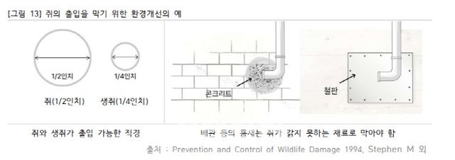 쥐 끈끈이에 대한 대안으로 우선 구조물의 틈새 차단이나 음식물 쓰레기의 적절한 처리 등과 같은 환경개선이 선행되어야 한다고 지적하고 있습니다.