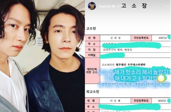 [메디먼트뉴스 김진우 기자] 그룹 슈퍼주니어 멤버 김희철이 동해를 고소했다는 글과 함께 고소장을 게시했다. 앞서 동해가 김희철의 굴욕 사진을 올리며 시작된 유쾌한 ‘장난’으로, 팬들에게 큰 웃음을 안겼다.