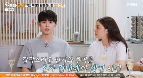 이어 MC들은 “많은 사랑을 받았지만, 루머가 있어서 마음고생을 했을 것 같다”라고 조심스럽게 물었다. 최시훈은 “너무 힘들었다”라고 답한 뒤 “지하 주차장 구석에 혼자 앉아서 시간을 보냈다. 흡연도 다시 했다. 내가 하지 않은 걸 ‘하지 않았다’라고 증명하는 게 어렵더라”라고 털어놨다.