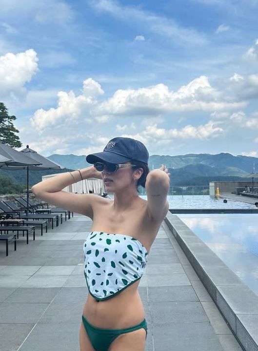 최근 손담비는 인스타그램에 사진 여러 장을 게재했는데, 튜브톱 상의에 삼각 팬티 비키니를 입고 늘씬한 몸매를 자랑했다.