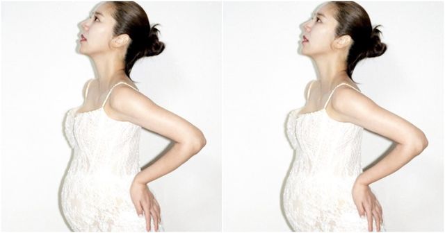 아직 배꼽 아래 희미한 임신선이 남아있는 상태로, 출산 4개월차 임산부라고는 믿어지지 않을 정도로 완벽한 라인을 자랑했다.