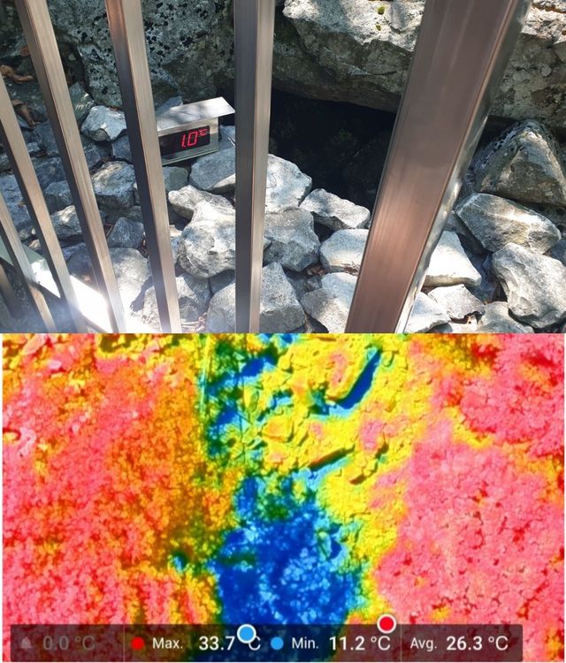 열화상 드론으로 촬영한 밀양 얼음골, 한낮에도 1도를 유지한다. / 산림청 국립수목원 제공