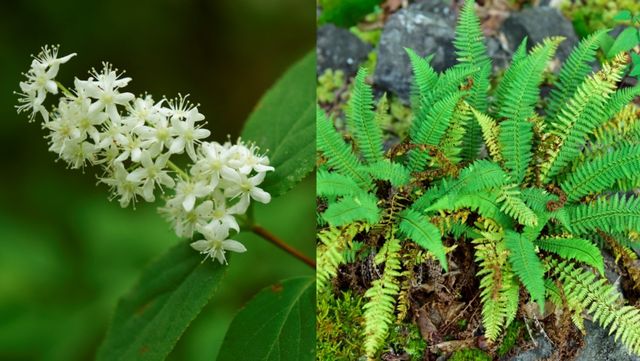 밀양 얼음골 주요 식물인 꼬리말발도리(좌)와 주저리고사리(우) / 산림청 국립수목원 제공