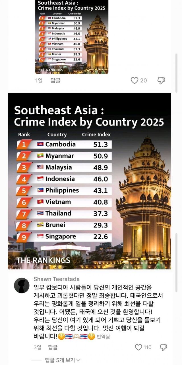 일본여성 여행 영상에 태국vs캄보디아인들 난리난 이유