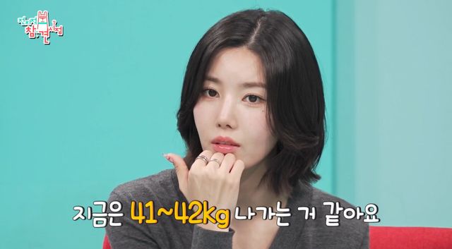 권은비는 현재 건강 상태에 대해 “이제 많이 괜찮아졌다. 무대 준비하느라 식단도 진짜 열심히 하고 무리한 게 컸던 것 같다”고 털어놨다. 권은비는 요거트와 메추리알 등으로 식단을 해왔다고. 그는 “원래 47~8kg 나가는데 지금은 41~42kg 정도다. 건강을 회복하기 위해 다시 챙겨먹고 있다”고 고백했다.