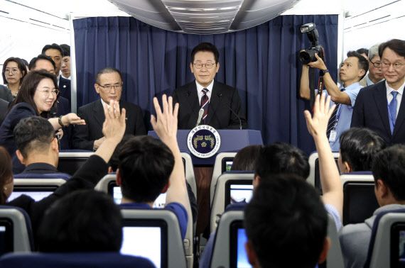 [미국(워싱턴DC)=이데일리 김유성 기자] 이재명 대통령이 일본 방문 일정을 마치고 미국을 향하는 전용기 안에서 기자들과 깜짝 기자 간담회를 진행했다. 총 51분 동안 진행된 이번 기자간담회는 한미 정상회담을 앞둔 이 대통령의 솔직한 심경을 엿볼 수 있었다.