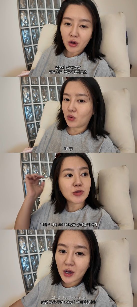이수민은 "제가 결혼식 당일에 최저 몸무게 48kg였다. 그리고 48kg에서 50kg를 유지하다가, 결혼 5개월 만에 임신을 하고 열 달 동안 35kg가 쪘다. 막달 몸무게가 무려 85kg였다"고 고백했다.