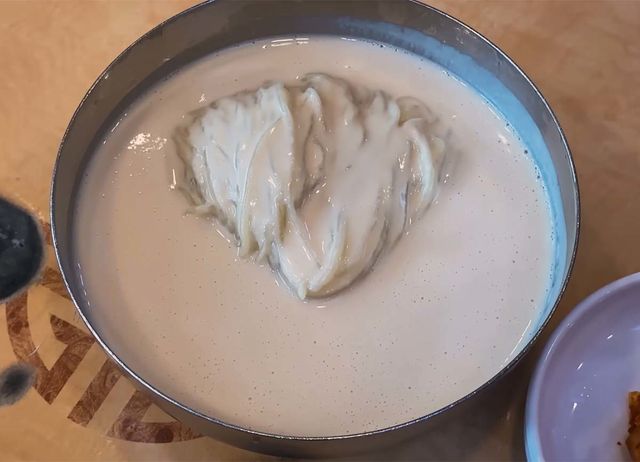 냉콩국수는 삶은 콩을 갈아서 만든 진하고 부드러운 두유에 구수를 만 것이다. 유튜버는 “고기가 들어가지 않는 채식 요리”라면서 “얼음처럼 차갑게 서빙된다. 밀 면발은 차갑게 해서 먹을 때 매우 쫄깃한 식감을 낸다”고 설명했다.